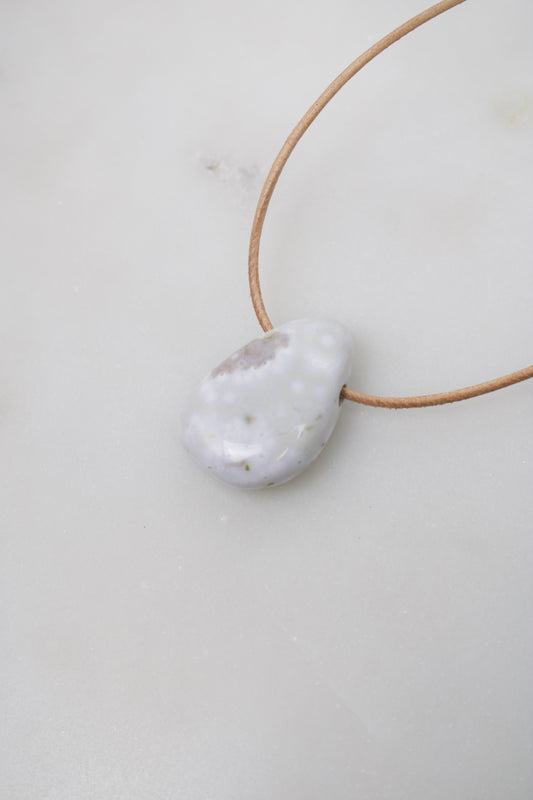 Wundervoller Stein, die Farbe, die Form einfach wunderschön. Ich habe mich für das Korkband entschieden mit Silberverschluss und ich bin sehr zufrieden damit.