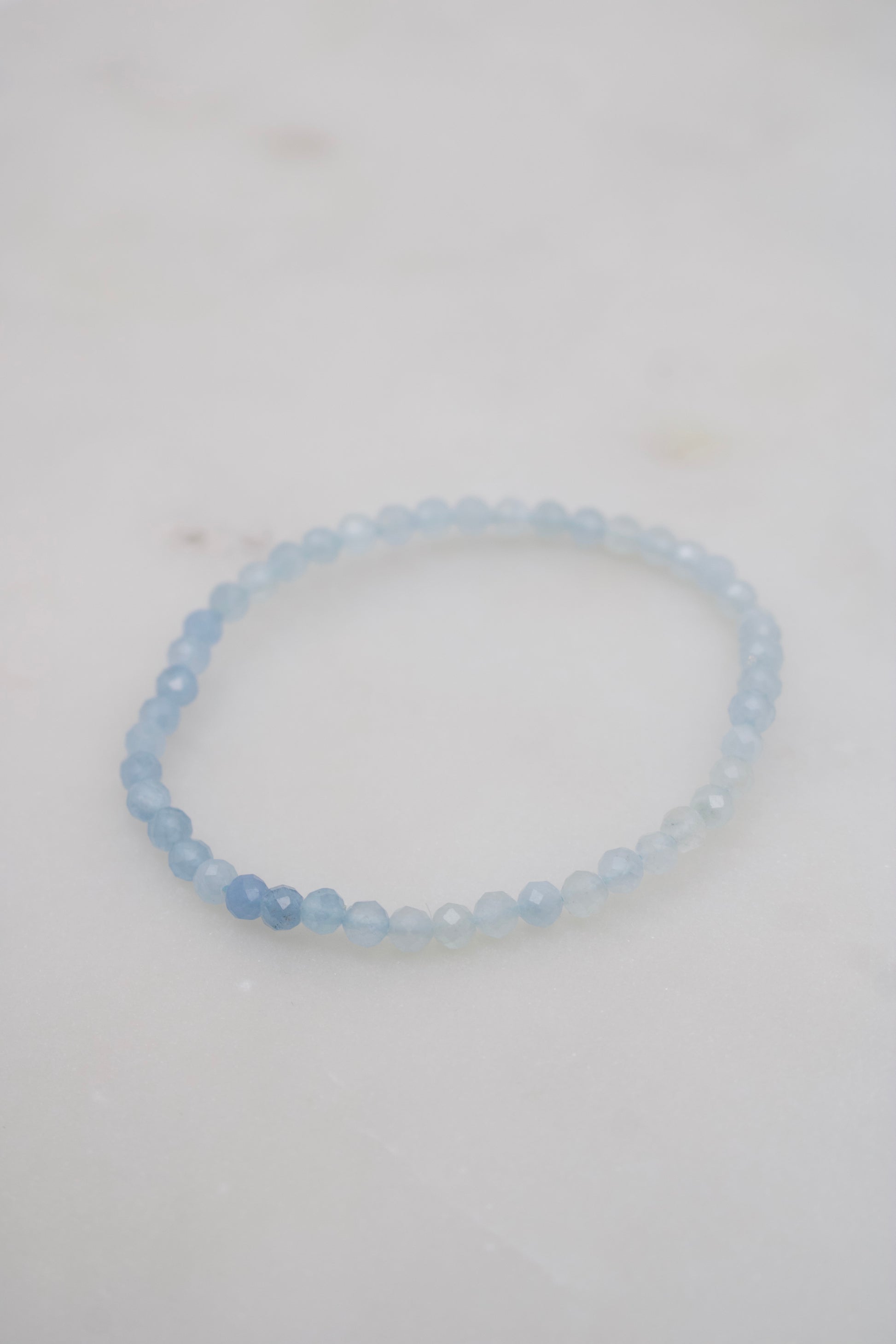 Dieses zarte Armband aus 4 mm facettierten Aquamarin-Perlen fängt das Licht mit jedem kleinen Funkeln ein. Die hellblauen Nuancen erinnern an das klare, beruhigende Wasser eines stillen Meeres – frisch, weich und voller Leichtigkeit. Die feinen Facetten verleihen dem Armband eine elegante Lebendigkeit, ohne dabei aufdringlich zu wirken.