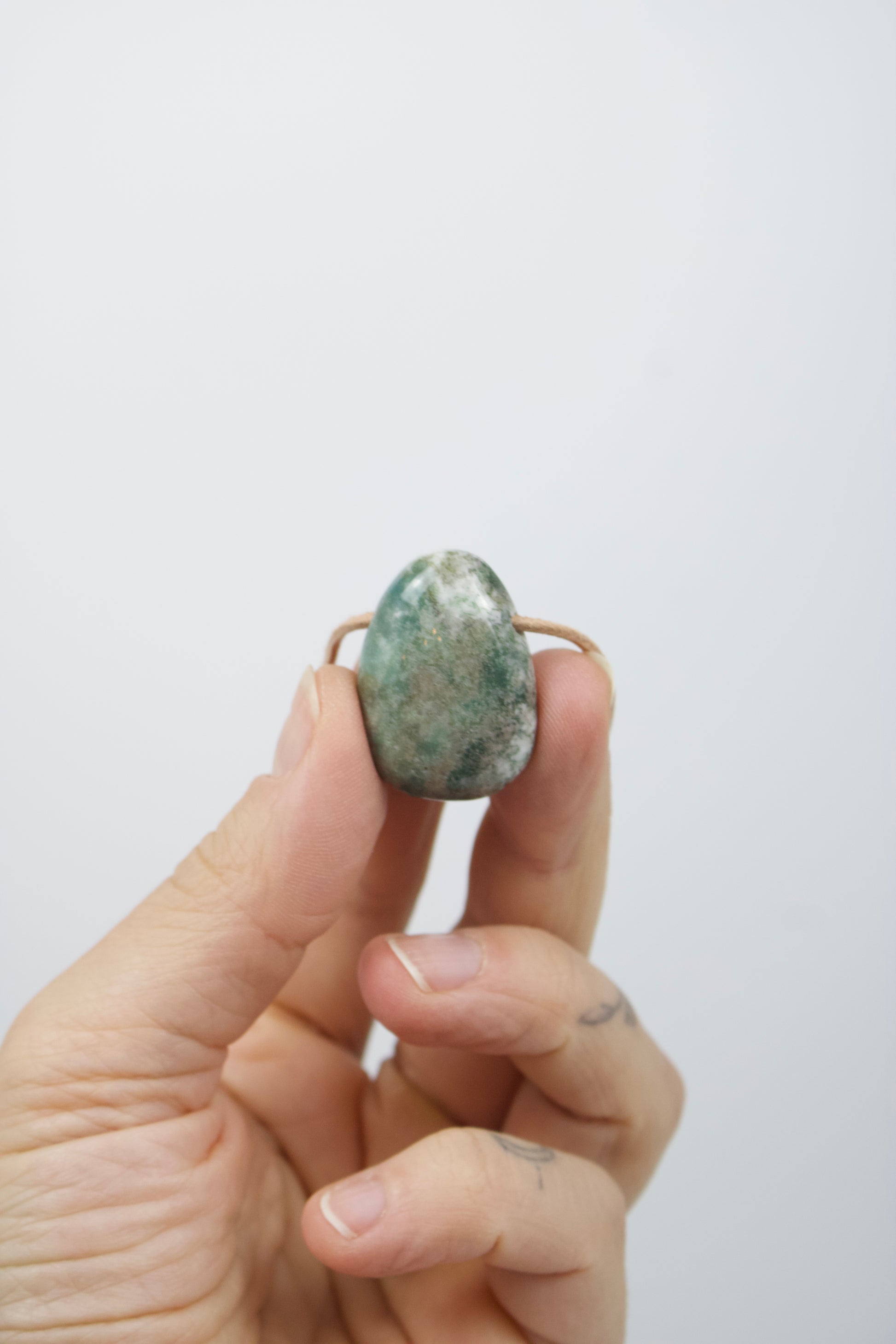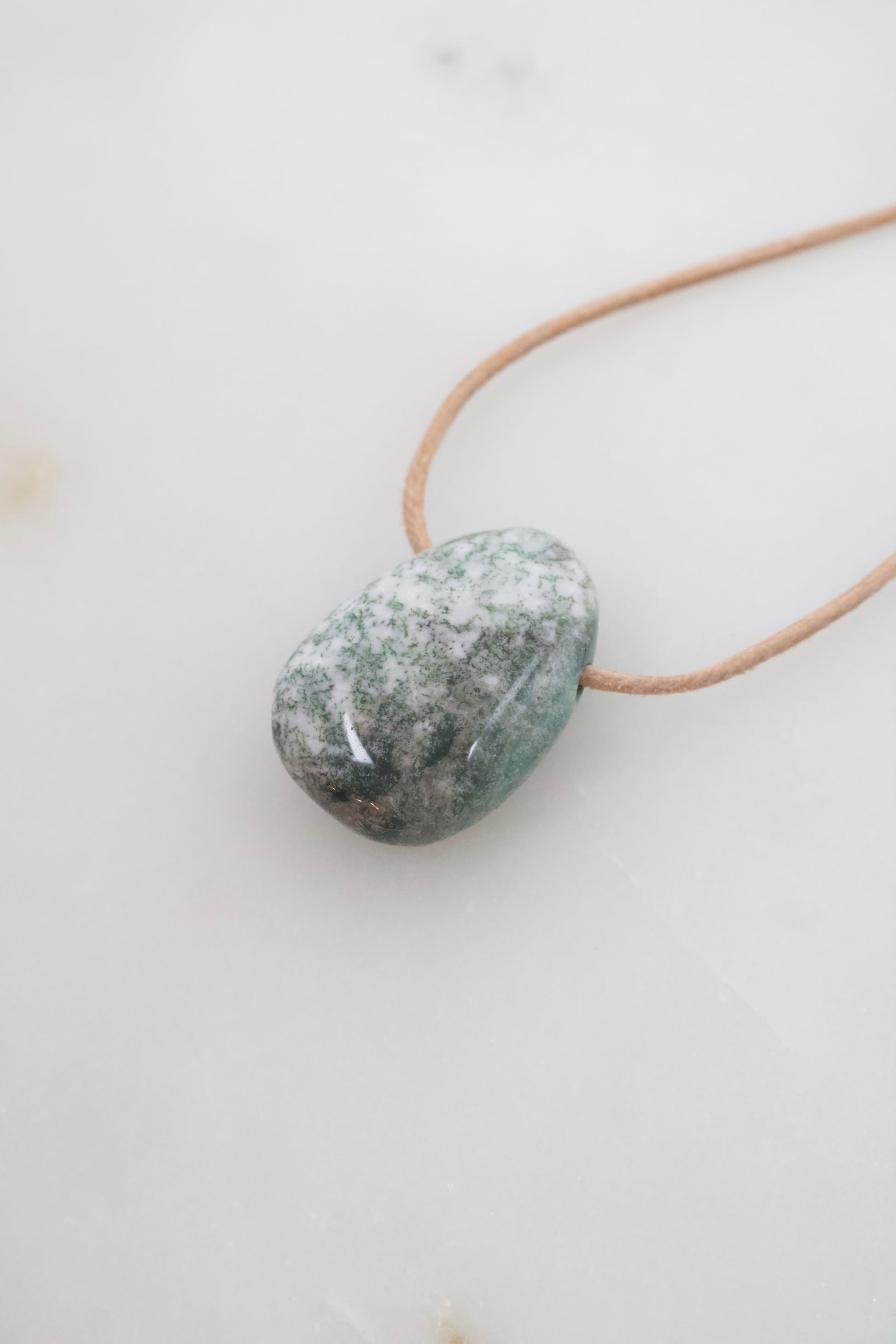 Der Anhänger wird an einem Lederband nach Wahl getragen und durch einen Karabinerverschluss aus Edelstahl in Silber- oder Goldoptik abgerundet.
