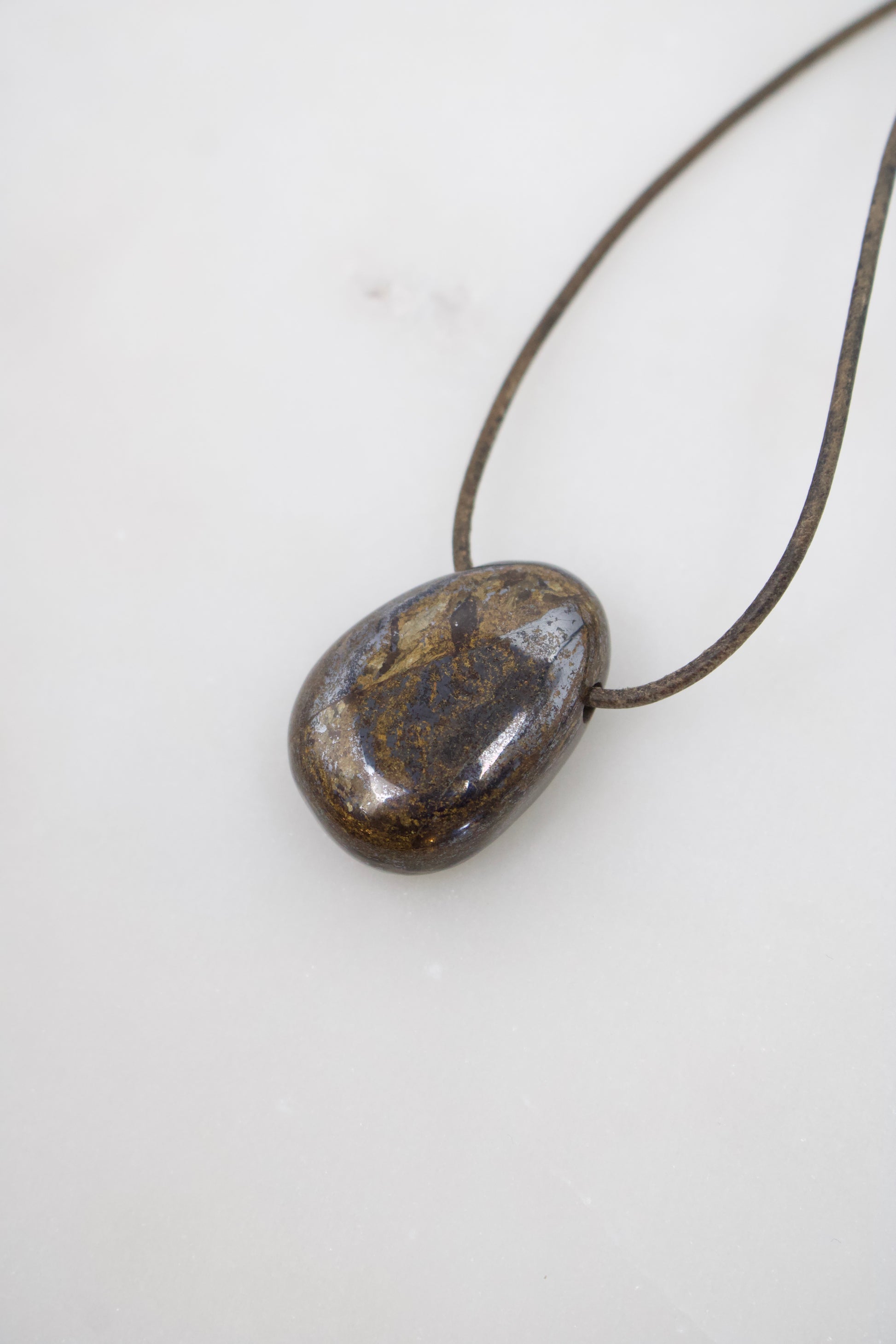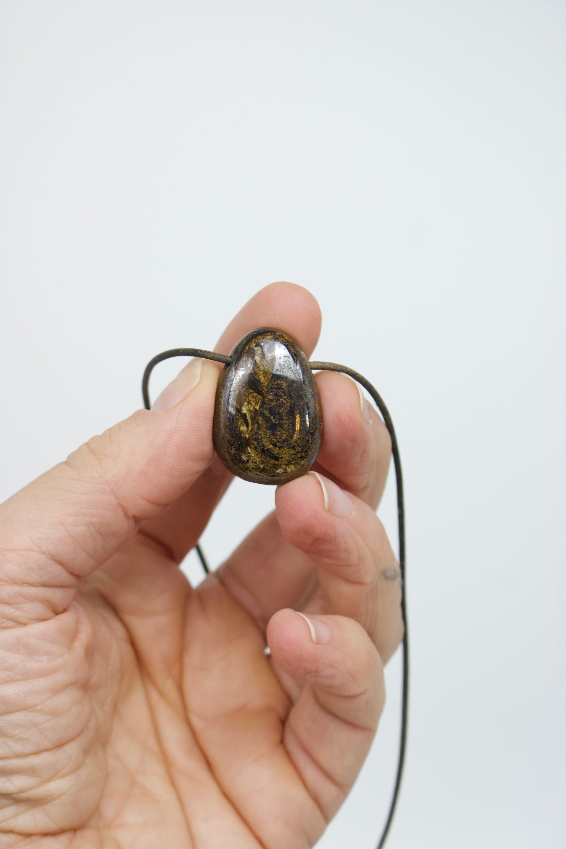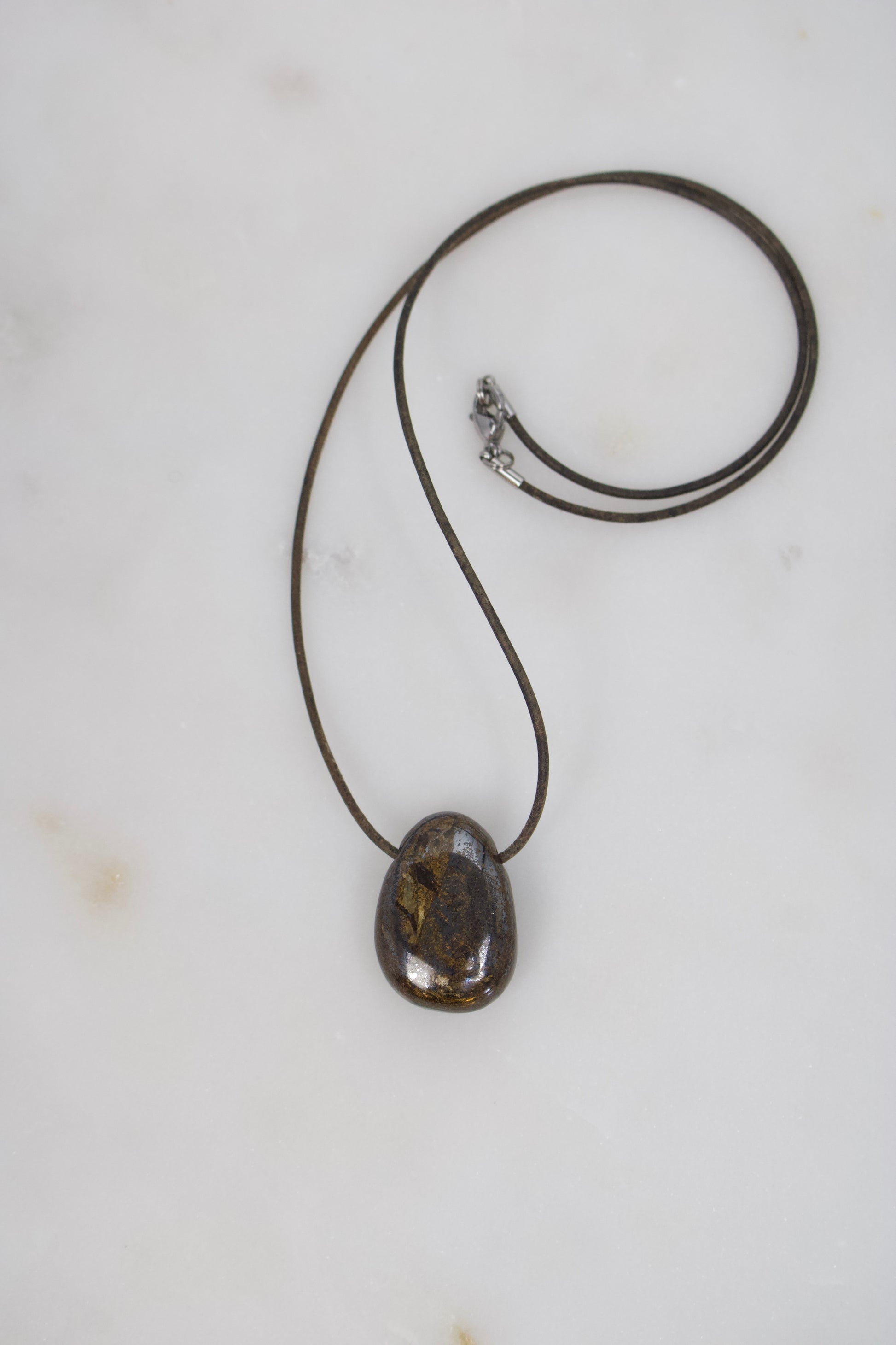 Dieser 31 mm große Bronzit-Anhänger fasziniert mit seinem tiefbraunen Grundton und dem charakteristischen bronze-goldenen Schimmer, der je nach Lichteinfall lebendig über die Oberfläche gleitet. Die natürliche Maserung verleiht dem Stein eine warme, elegante Ausstrahlung und macht jedes Stück zu einem echten Unikat.