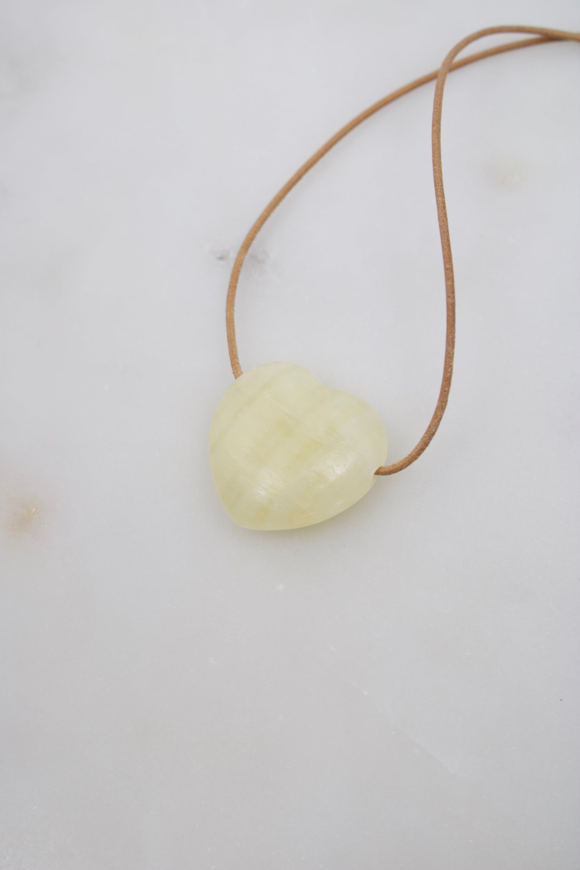 Gelber Calcit Herz-Anhänger · 29 mm · Lederband in Natur