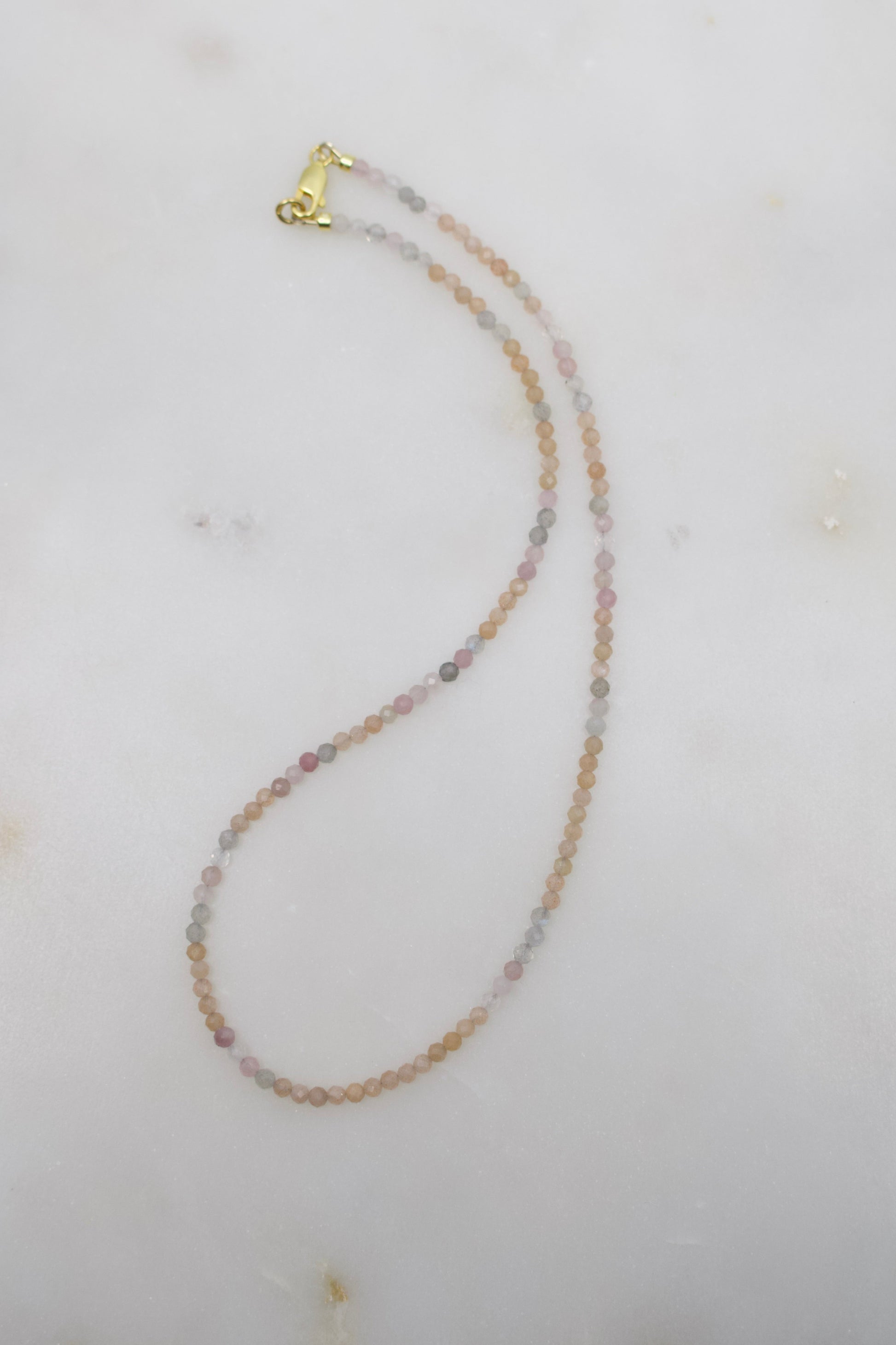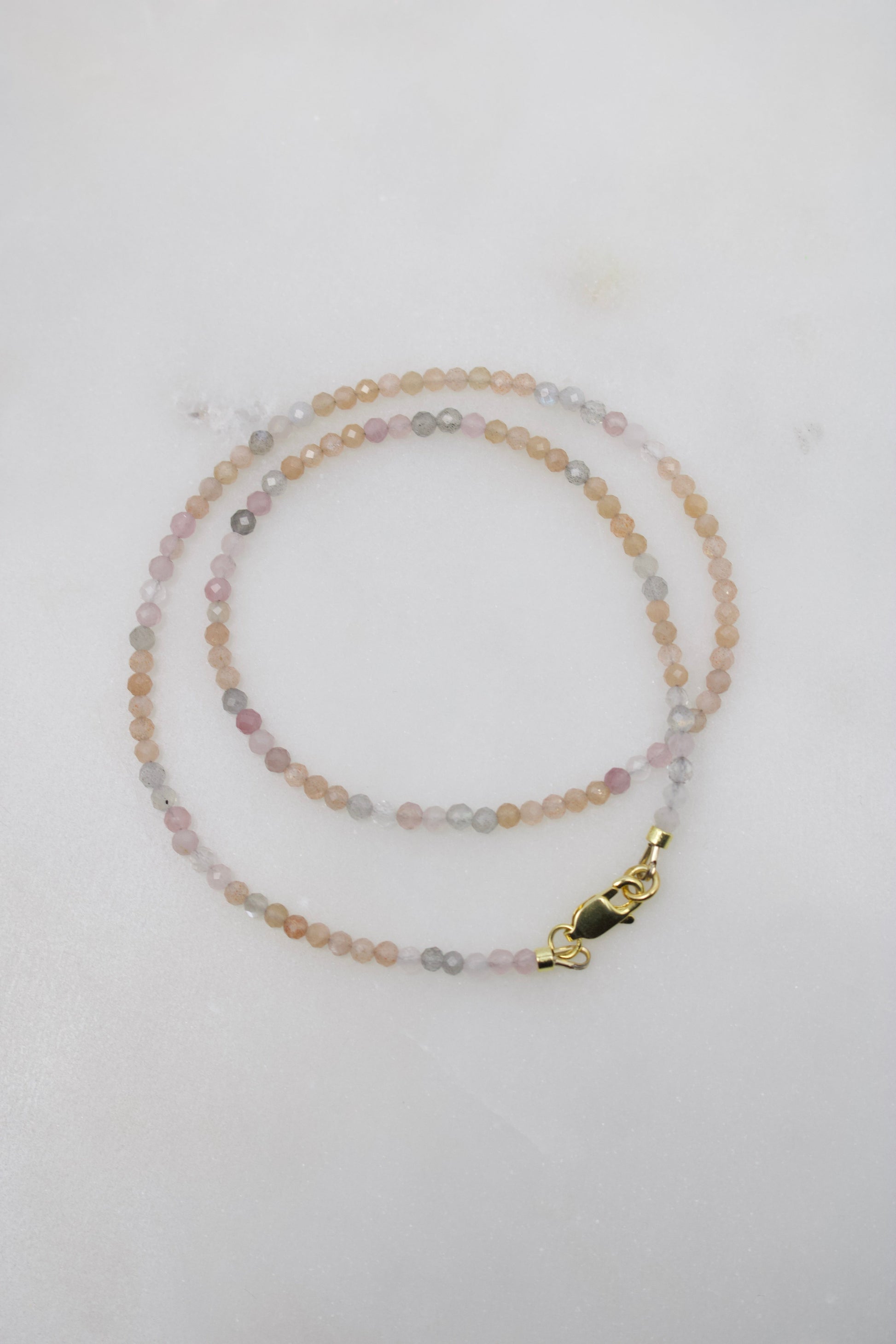 Sanfte 41 cm Perlenkette – Mondstein, Labradorit & Rosenquarz für werdende Mütter