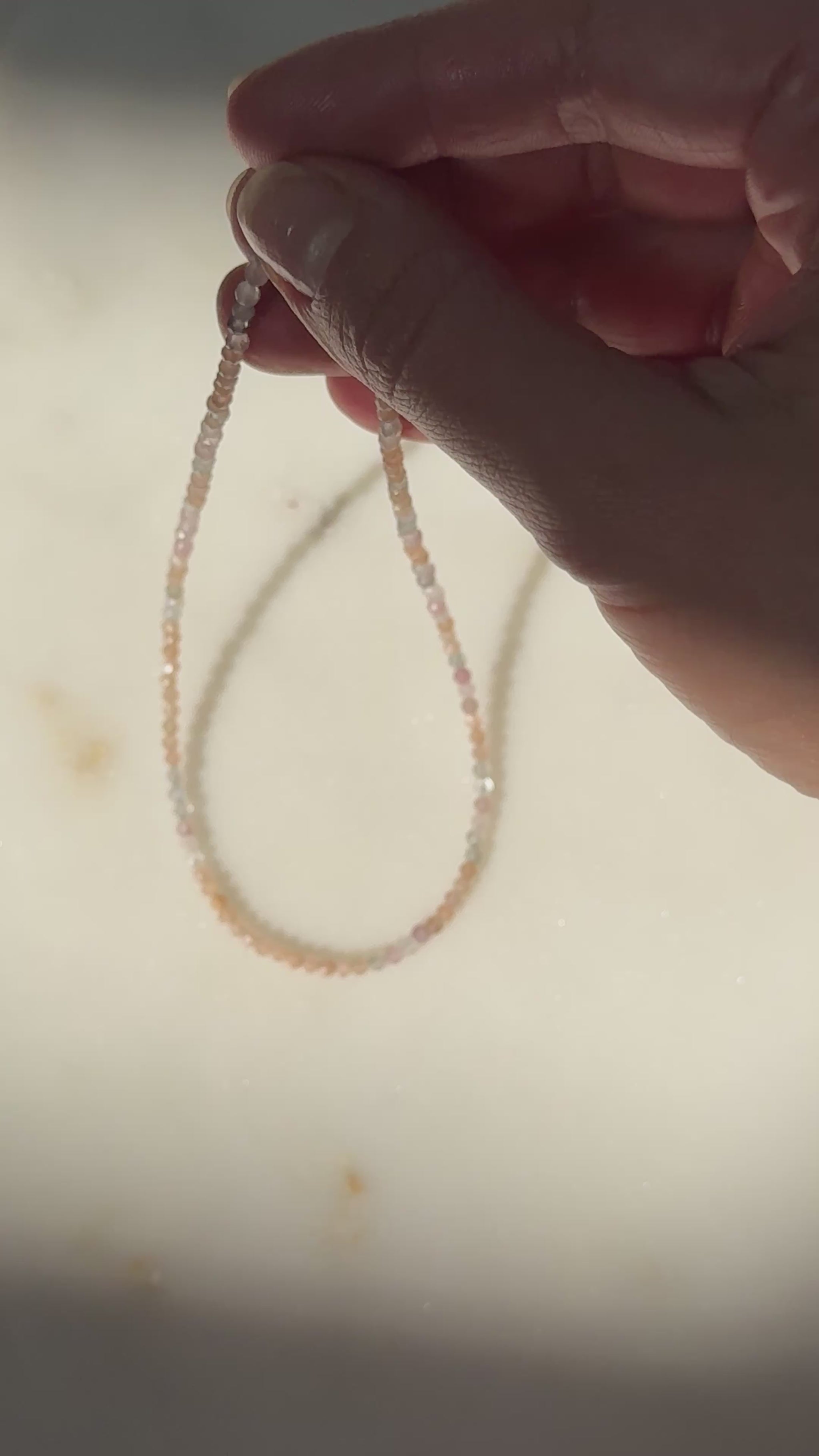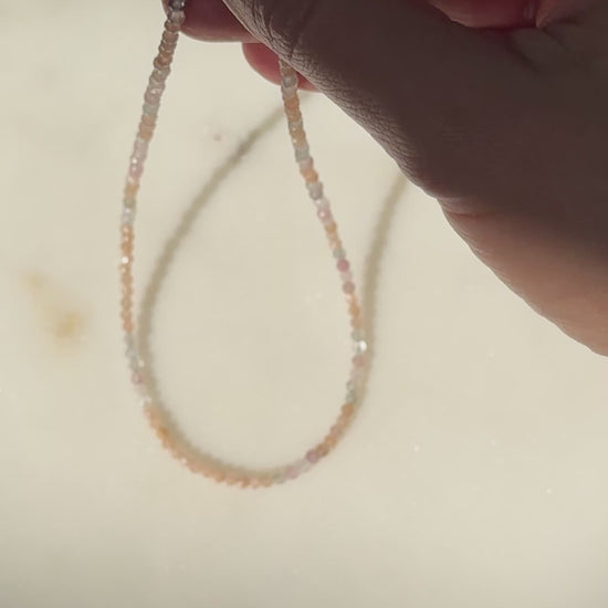 Diese zarte Perlenkette ist ein liebevoller Begleiter für werdende Mütter. Aus AAA-Qualität Micro-facettierten 3mm Perlen gefädelt, vereint sie die Edelsteine Mondstein, Labradorit und Rosenquarz zu einem harmonischen Schmuckstück voller Wärme und sanfter Energie.