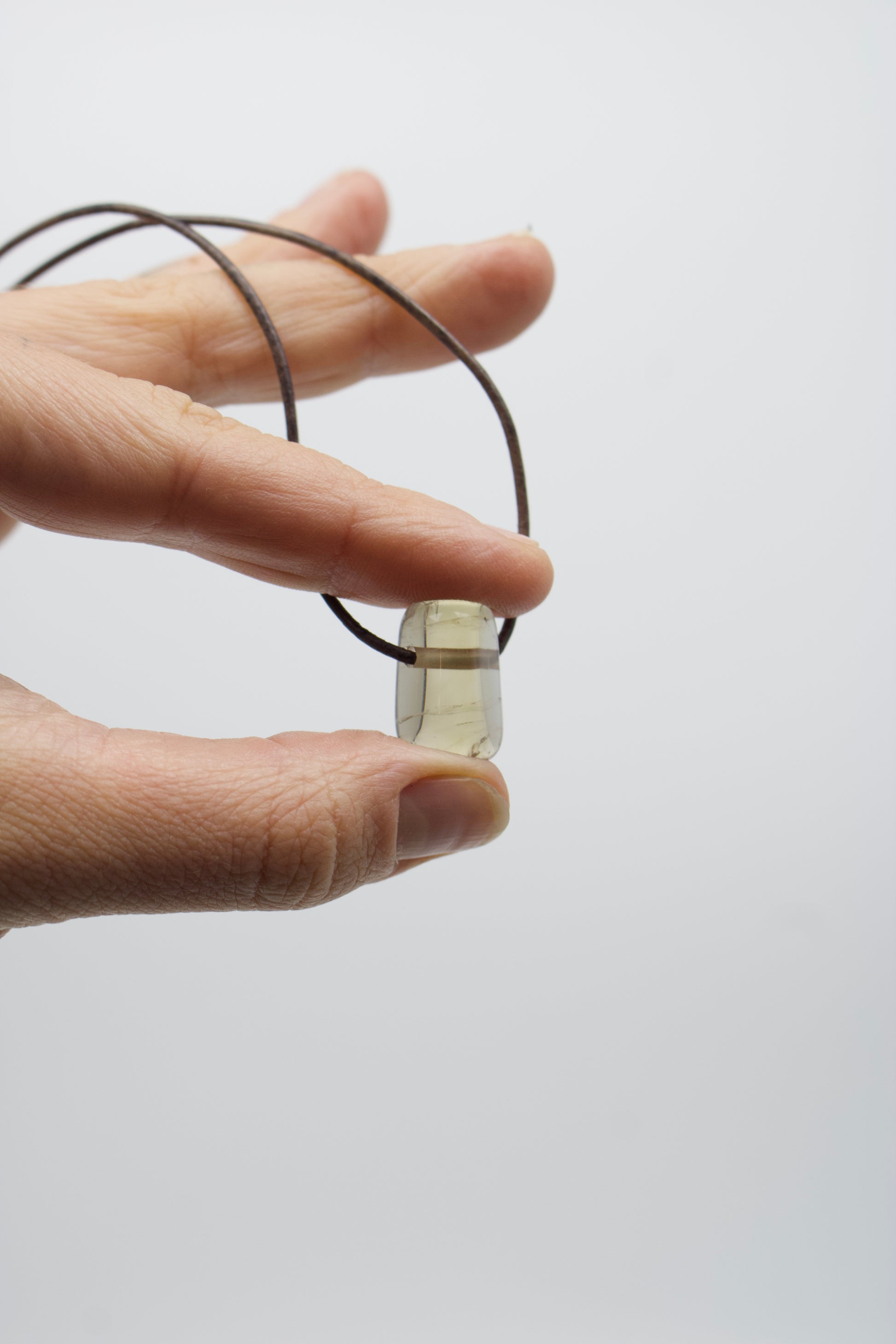 Mini Natur-Citrin Anhänger · 21 mm · mit Lederband nach Wahl & Edelstahlverschluss in Silberoptik