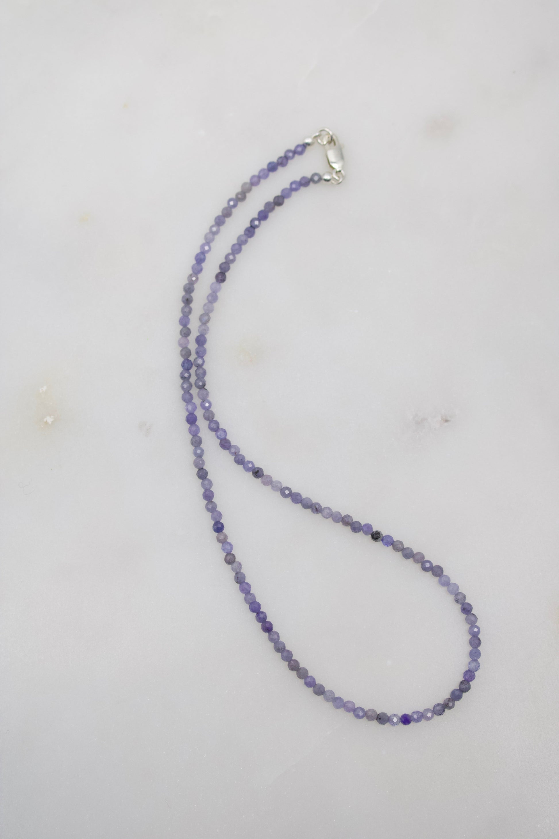 Eine elegante, energetisch unterstützende Perlenkette für alle, die ein tiefes Blau-Violett und zeitlose Schönheit lieben.