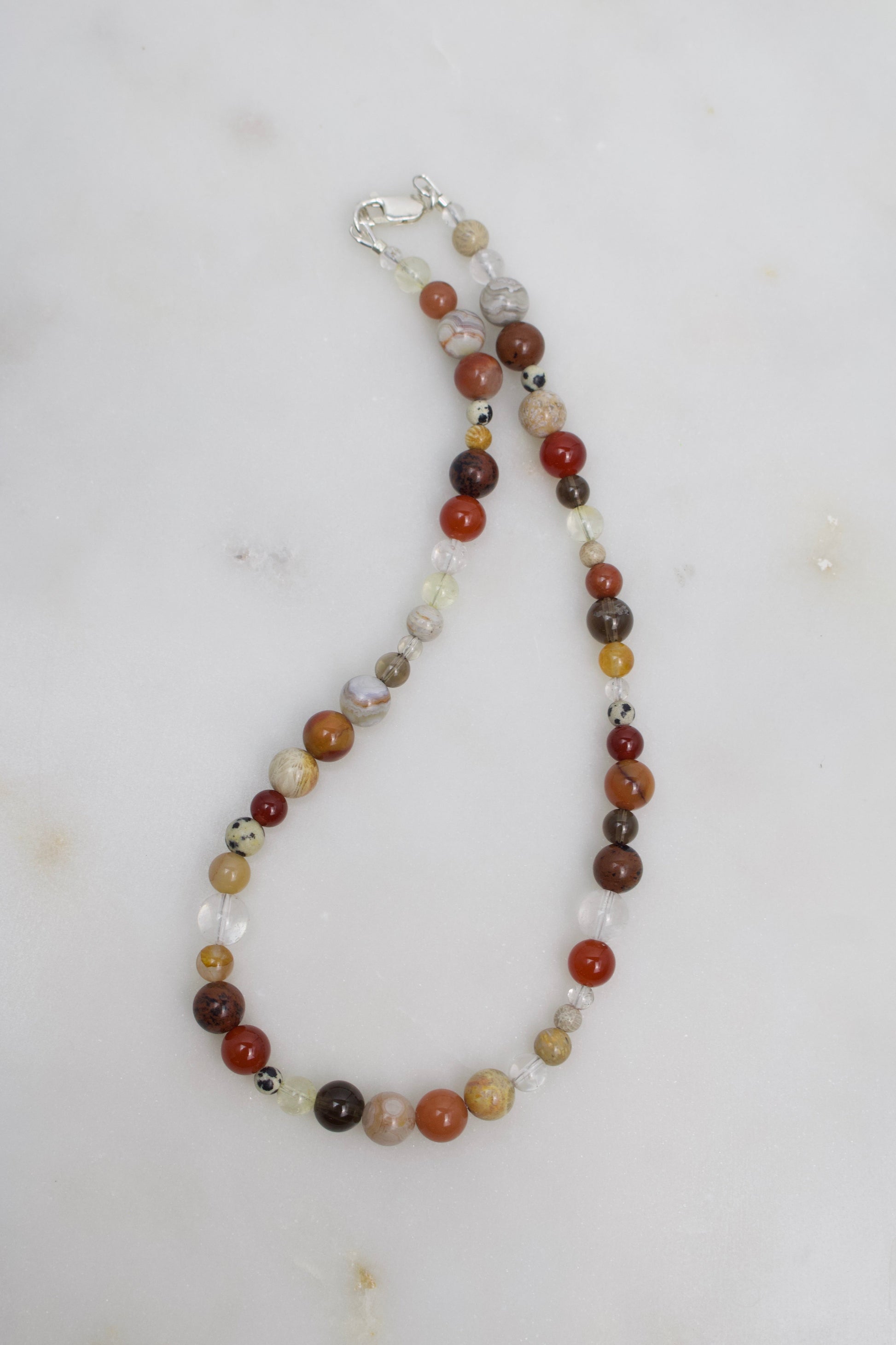 Abgerundet wird die Kette durch einen hochwertigen Verschluss, wahlweise aus Sterling-Silber oder 14K-vergoldetem Silber. Jedes Stück wird mit Sorgfalt von Hand gefertigt und ist ein Unikat, das die natürliche Schönheit und Vielfalt der Steine betont.