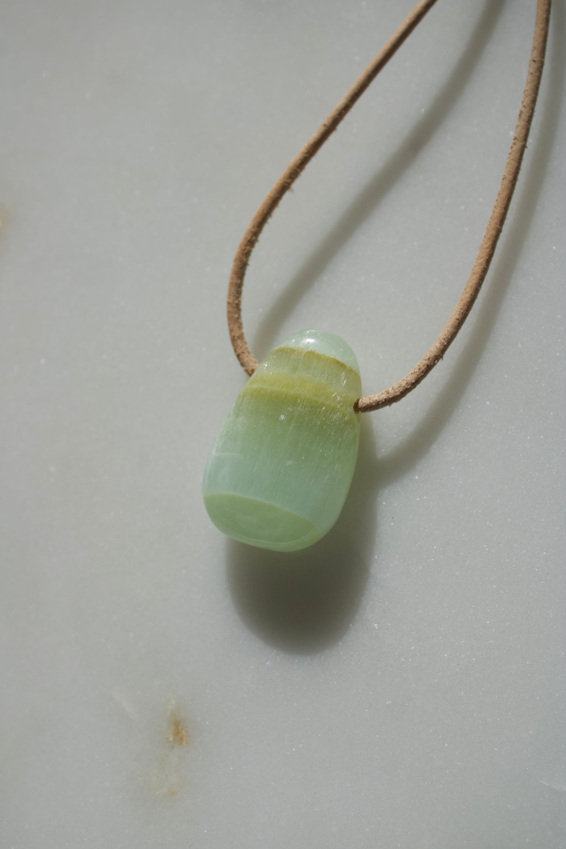 Dieser 32 mm große Pistazien Calcit besticht durch seinen sanften, pistaziengrünen Farbton mit zarten gelblichen Einschlüssen – wie das zarte Erwachen des Frühlings in einem Stein. Jeder Anhänger ist ein Unikat der Natur und bringt eine wohltuende, beruhigende Ausstrahlung mit sich.