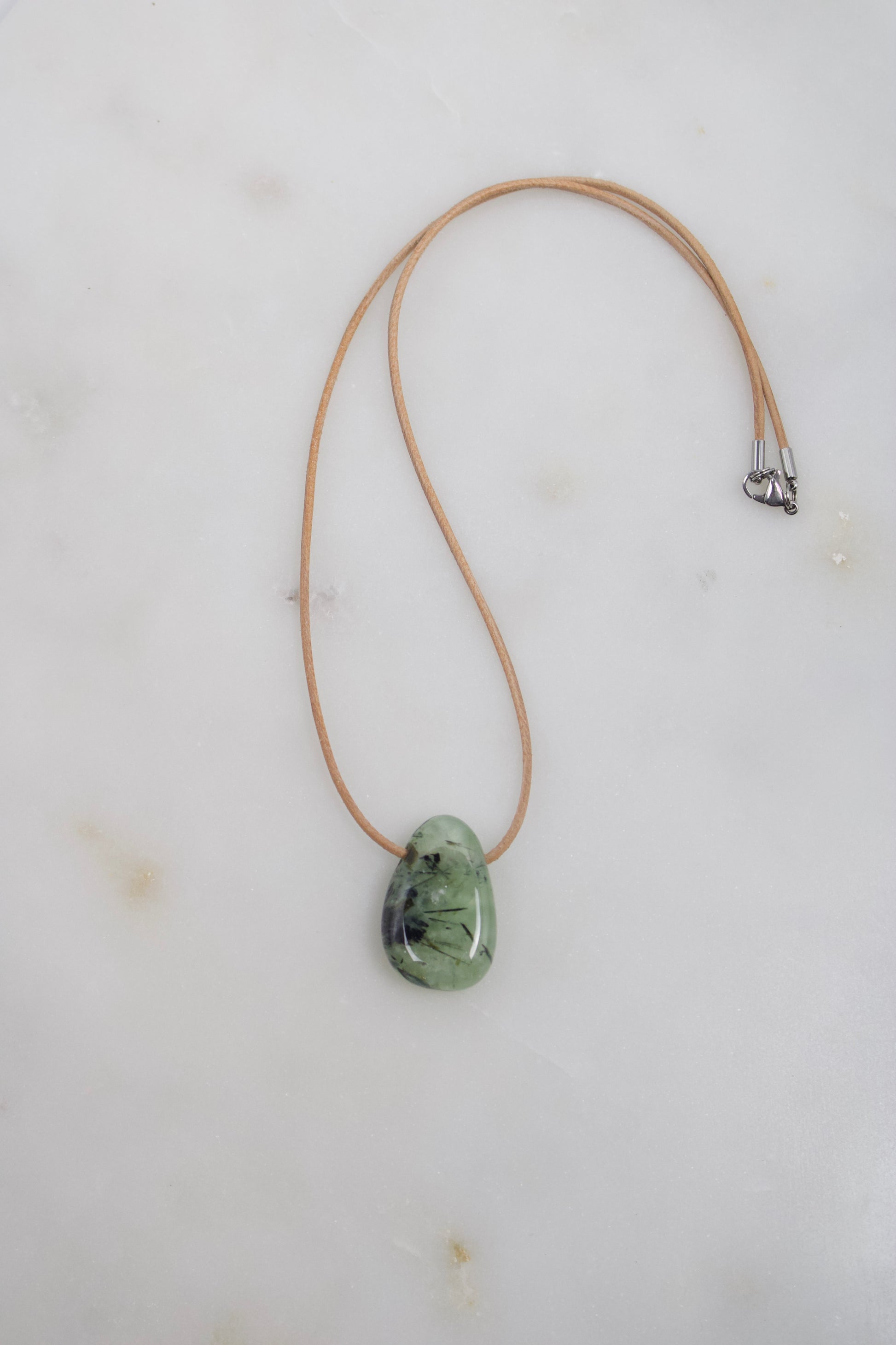 Dieser 31 mm große Prehnit-Anhänger besticht durch seinen sanften, zartgrünen Farbton und die natürliche, leicht wolkige Maserung, die dem Stein Tiefe und Lebendigkeit verleiht. Jeder Anhänger ist ein einzigartiges Unikat der Natur.