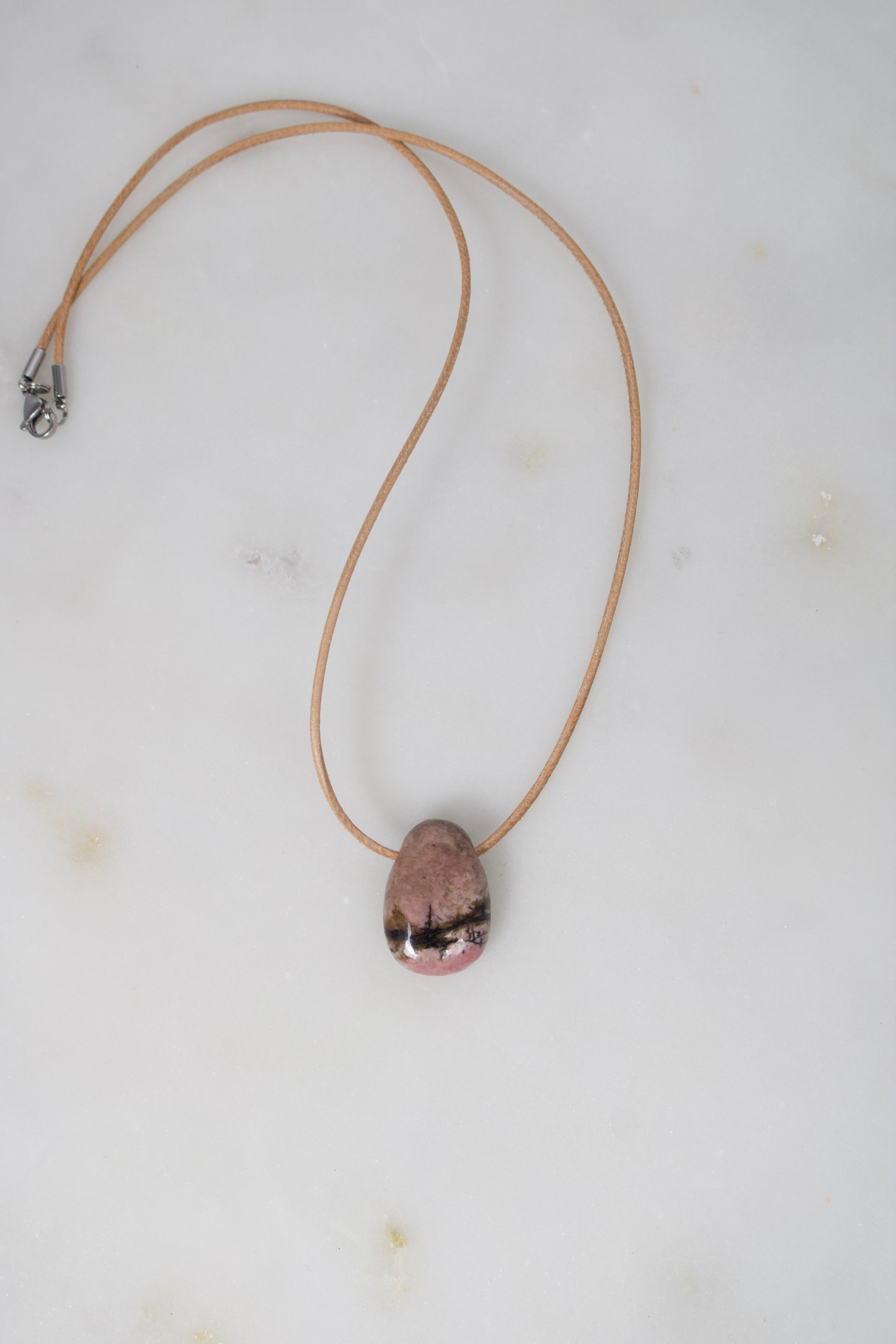 30mm Rhodonit Anhänger mit Lederband nach Wahl.
