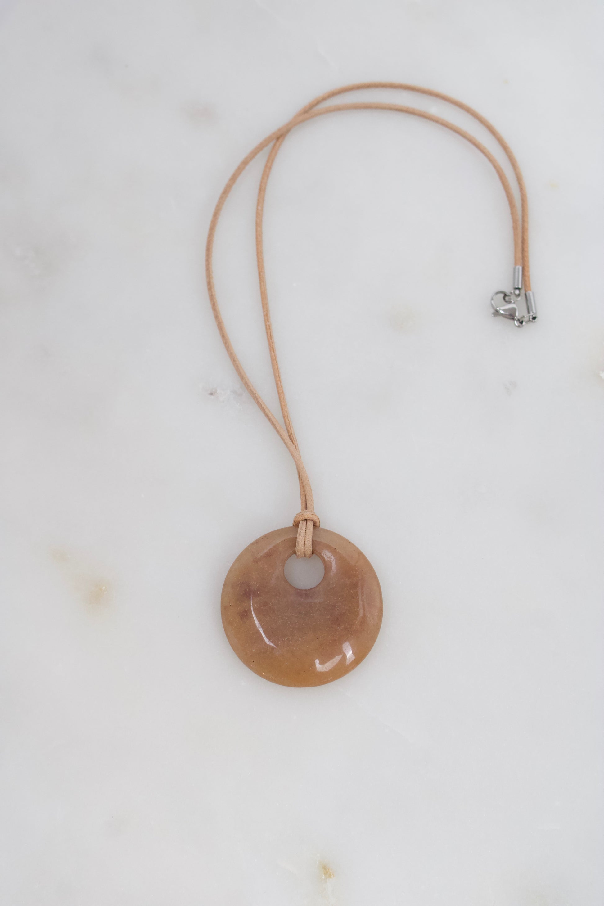 Dieser 40 mm große Aventurin-Donut besticht durch seinen warmen orange-braunen Farbton und den dezenten, natürlichen Glanz, der dem Stein Tiefe und Lebendigkeit verleiht. Die klassische Donutform symbolisiert Harmonie und einen ausgeglichenen Energiefluss, wodurch der Anhänger sowohl stilvoll als auch energetisch unterstützend ist.