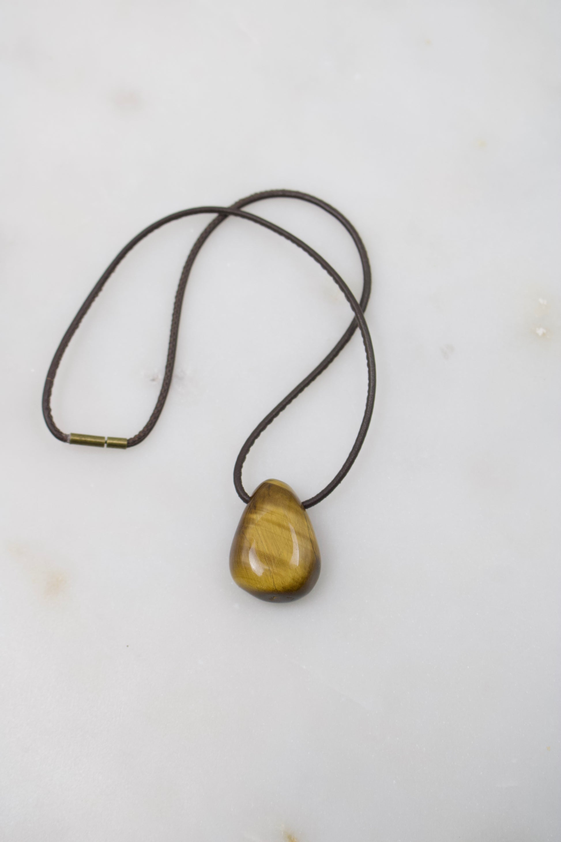 Tigerauge Anhänger · 30 mm · mit Lederband nach Wahl