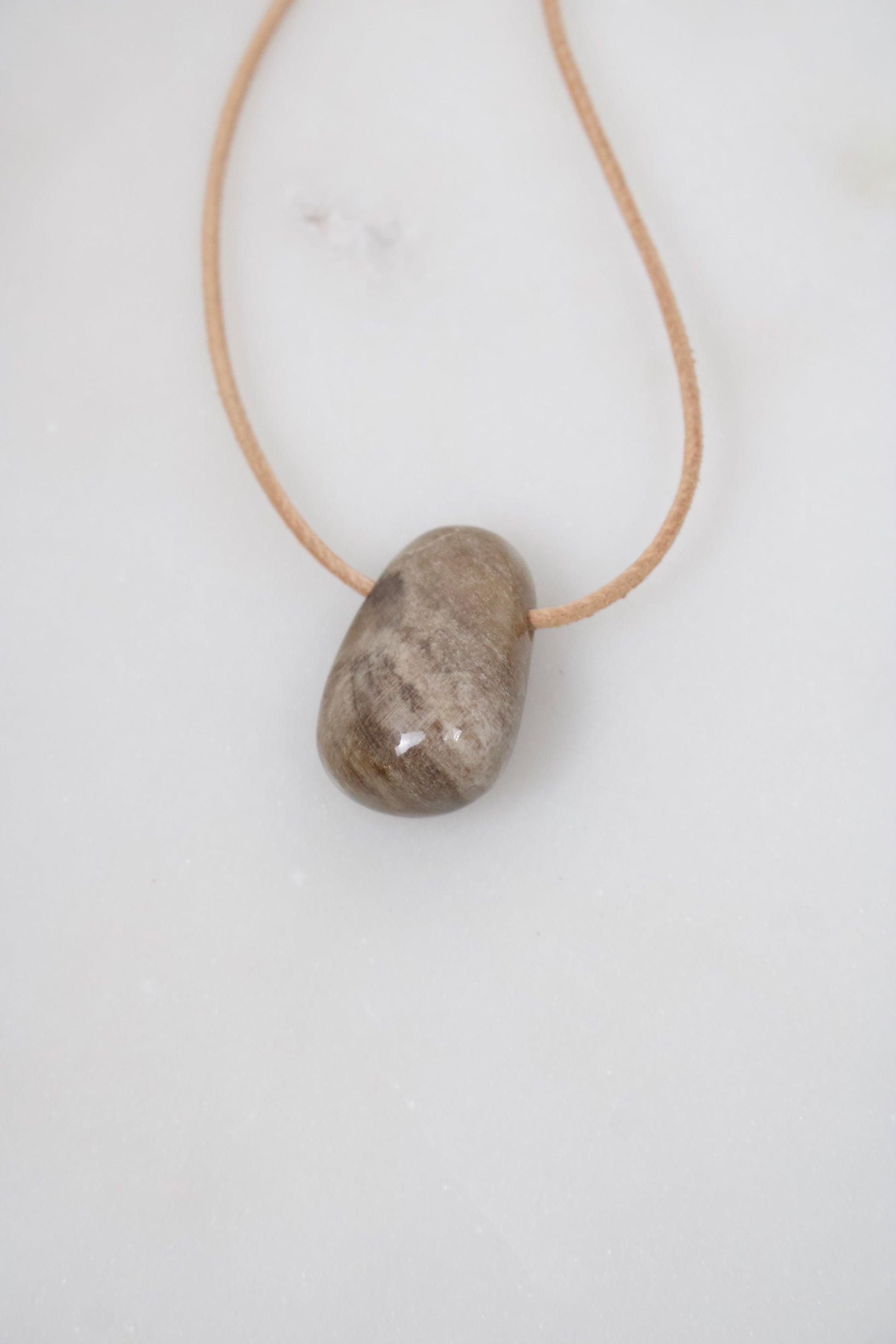 Versteinertes Holz Anhänger · 29 mm · Lederband nach Wahl