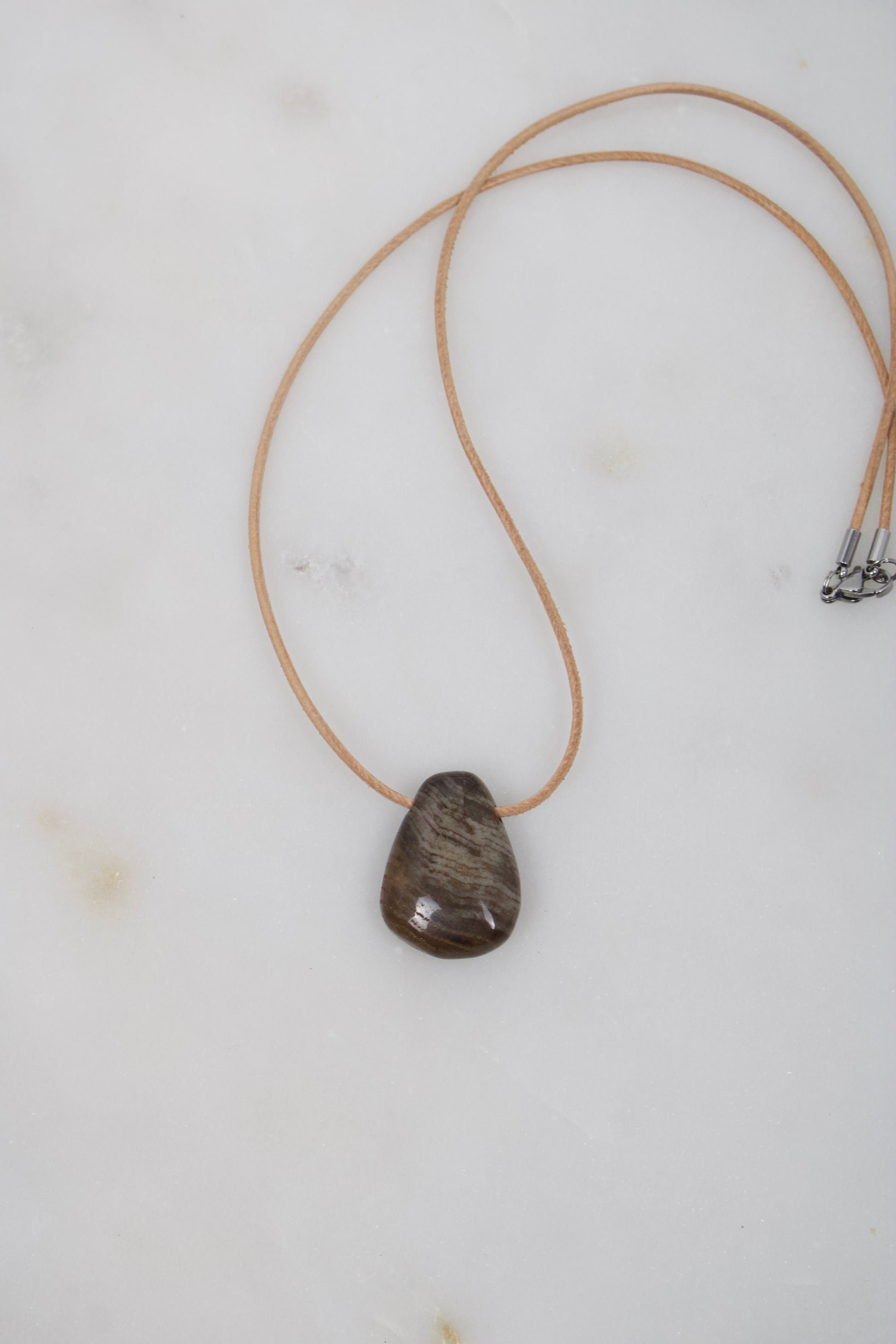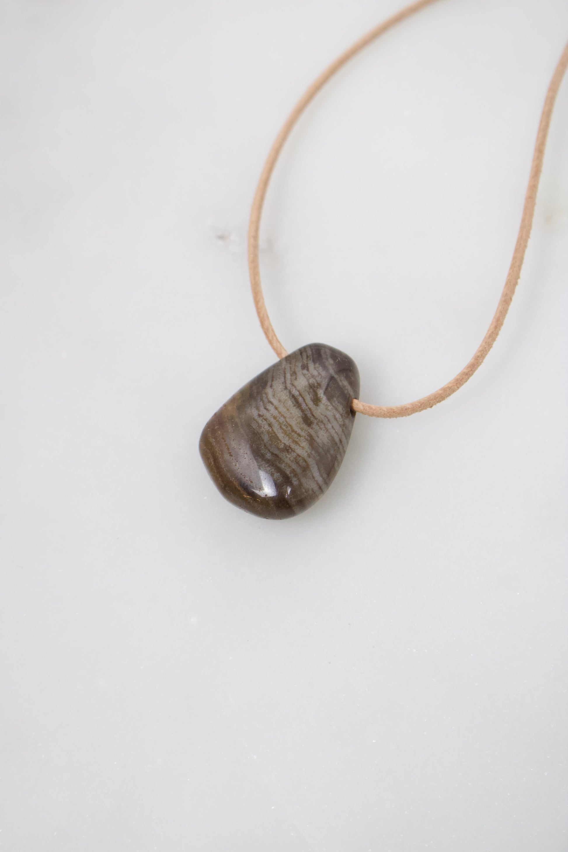 Versteinertes Holz Anhänger · 29 mm · Lederband nach Wahl