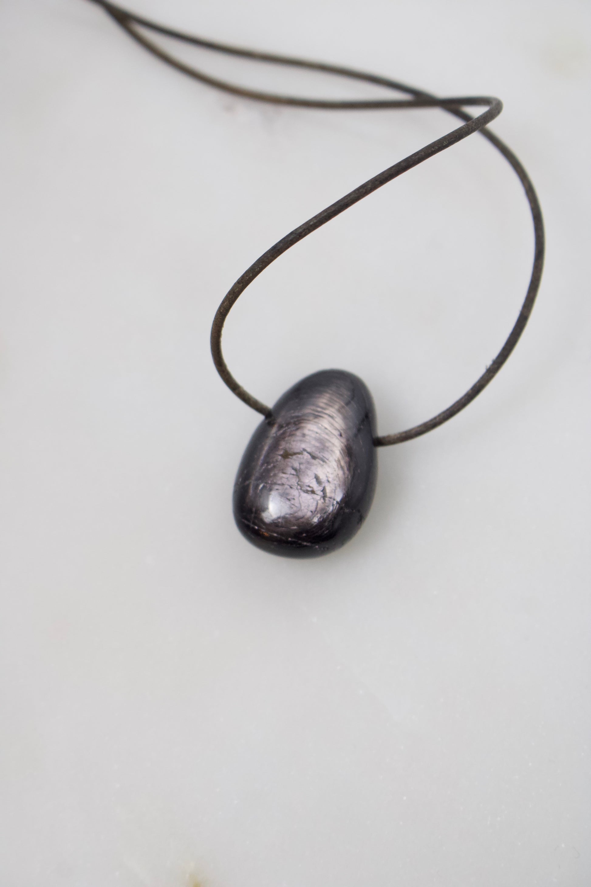 Dieser 31 mm große Hypersthen-Anhänger fasziniert mit seiner tiefdunklen, fast mystischen Ausstrahlung. Die Oberfläche zeigt eine einzigartige, natürliche Maserung, die je nach Blickwinkel in einem silbrig-bronzenen Glanz aufleuchtet. Dieses lebendige Lichtspiel – typisch für Hypersthen – verleiht dem Stein eine elegante, fast metallische Tiefe und macht jedes Stück zu einem unverwechselbaren Unikat.