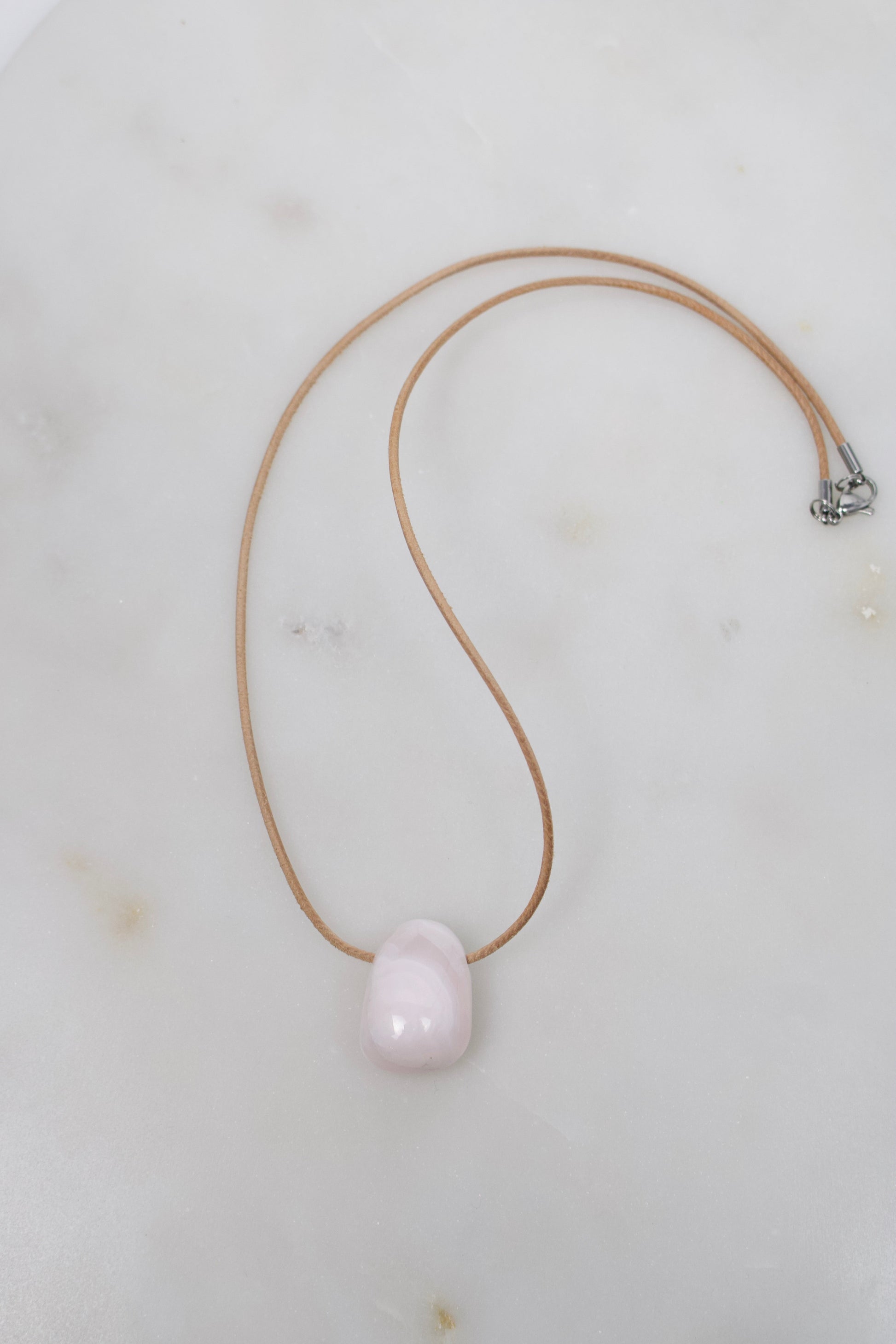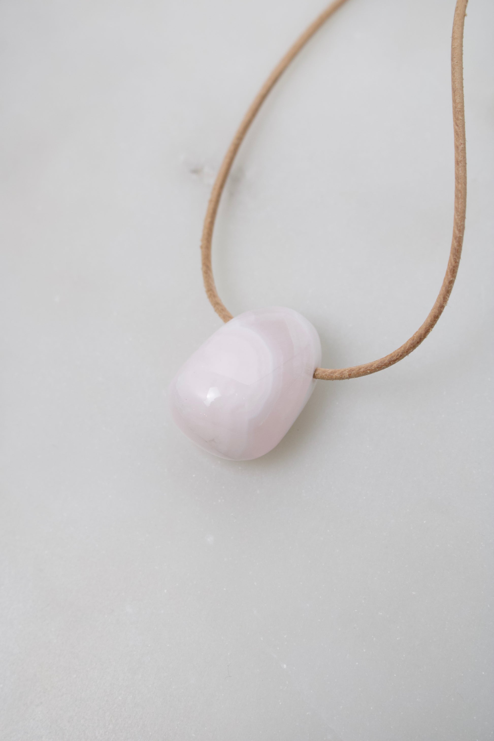 Der Anhänger wird an einem Lederband nach Wahl getragen, dessen Länge individuell bestimmt werden kann. Abgerundet wird das Schmuckstück durch einen Edelstahl-Karabiner in Silber- oder Goldoptik.