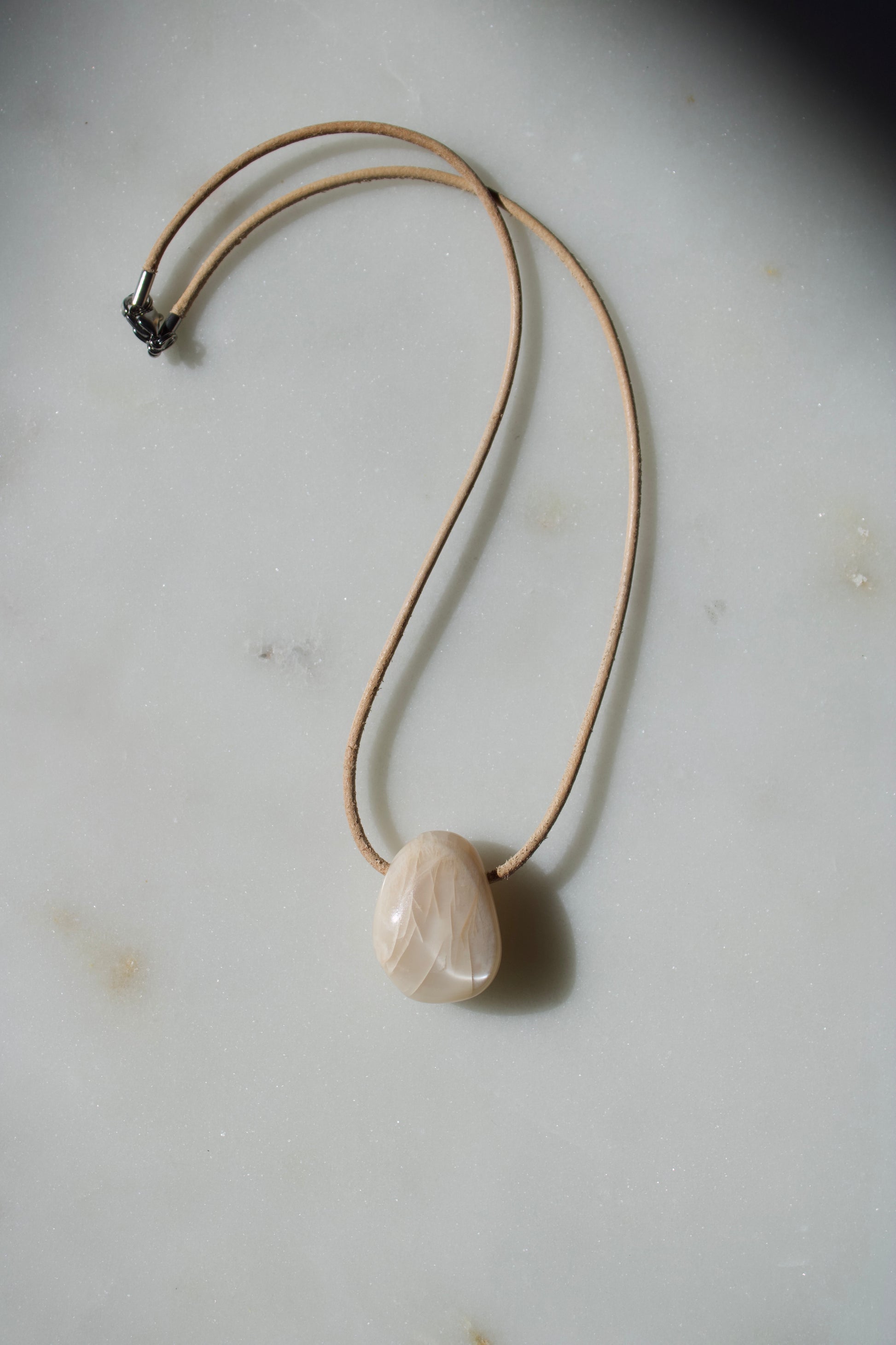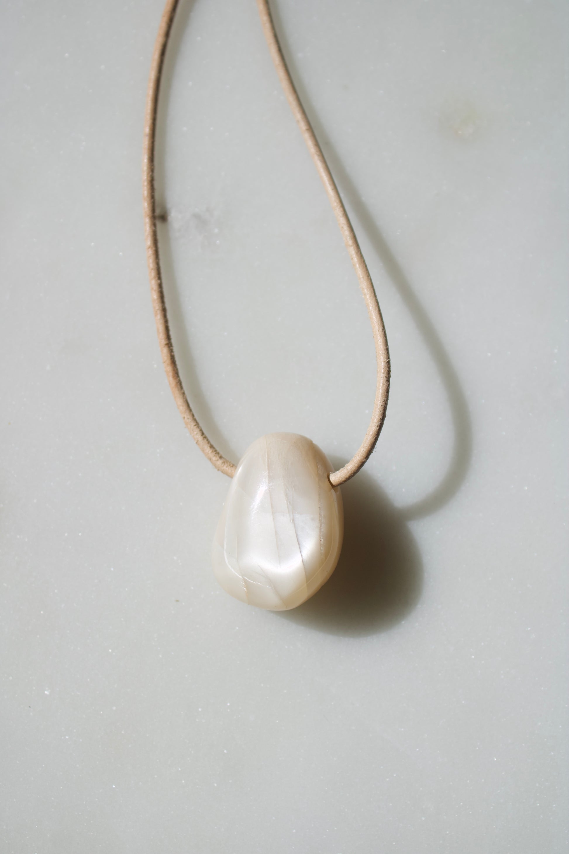 Mondstein-Anhänger – Cremefarben mit silbrigem Schimmer (28,5 cm)