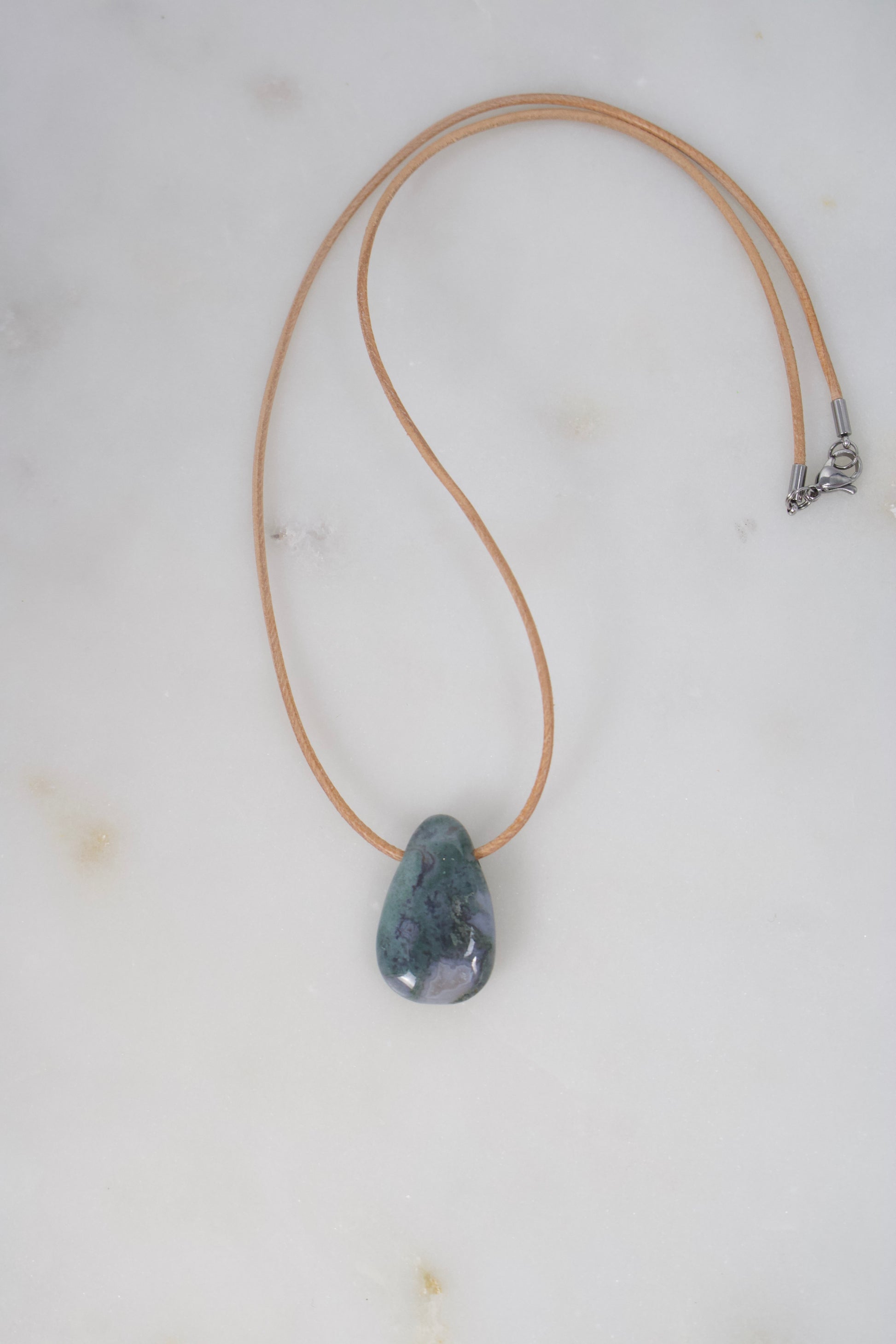 Dieser 30 mm große Moosachat-Anhänger zeigt ein wunderschönes, natürliches Muster, das an verwobene Landschaften aus Moos, Nebel und Wald erinnert. Seine sanften Grün- und Weißtöne wirken wie ein kleiner Ausschnitt aus der Natur – still, organisch, beruhigend. Die kleine Druse auf der Vorderseite verleiht dem Anhänger eine besondere Tiefe und einen feinen, mystischen Glanz.