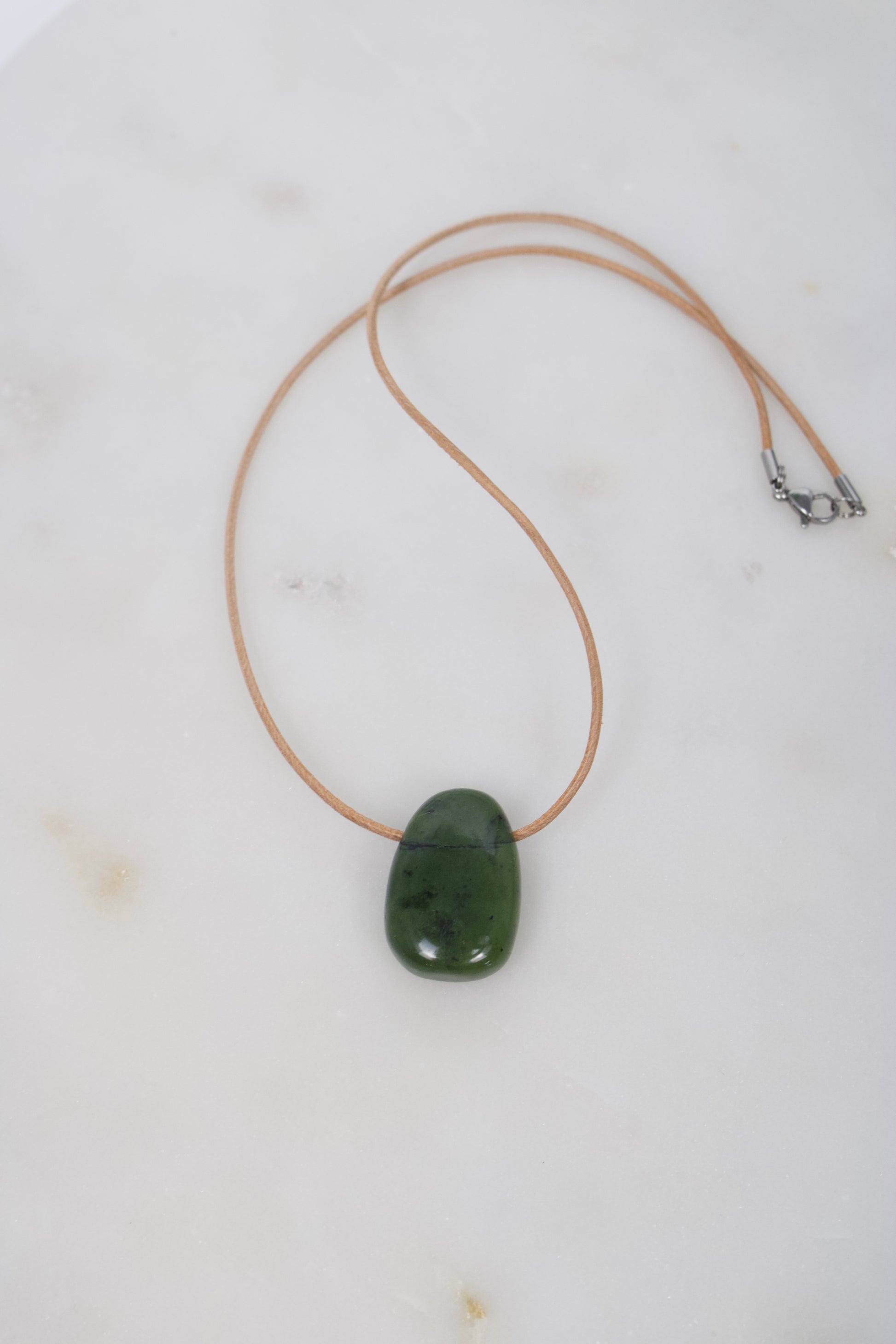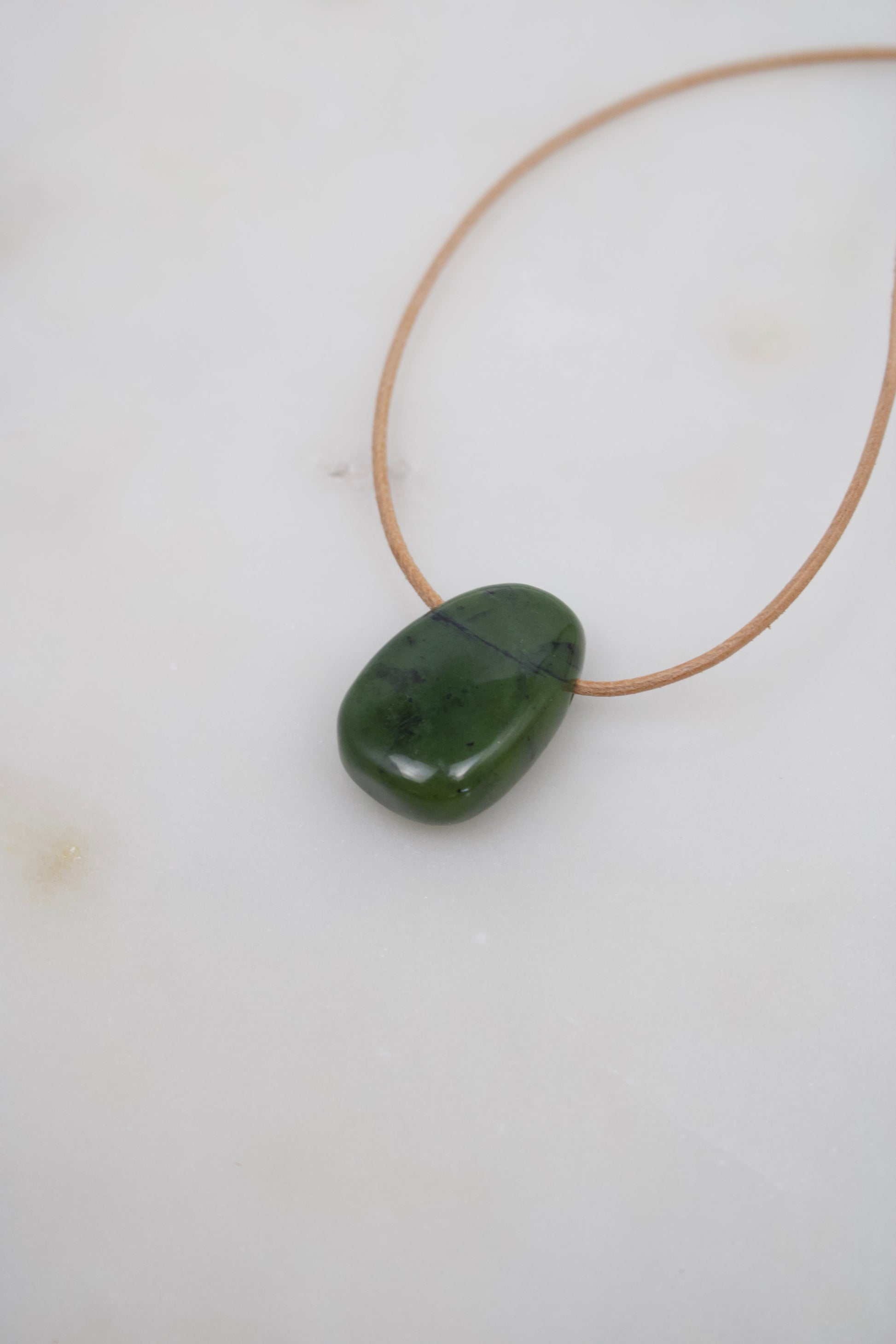 Nephrit Anhänger · 31 mm · Lederband nach Wahl