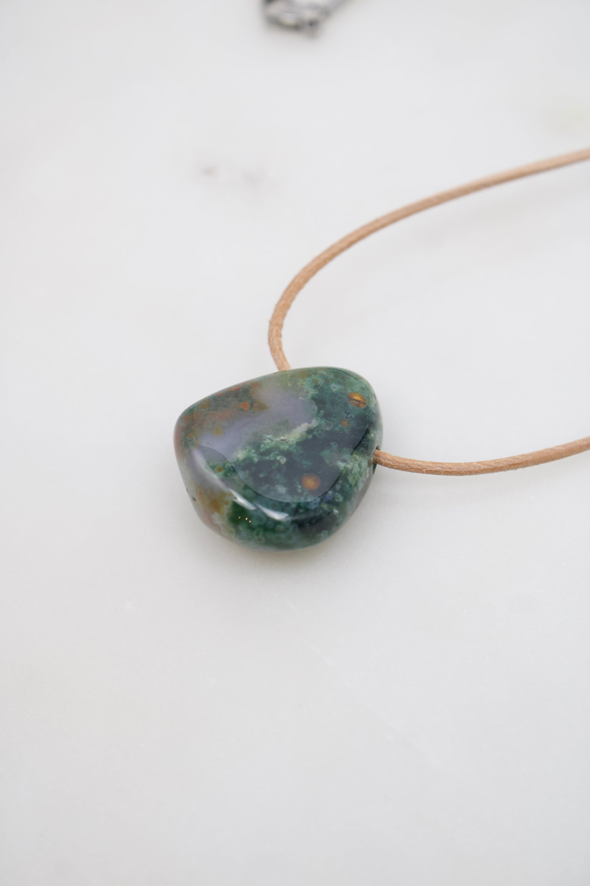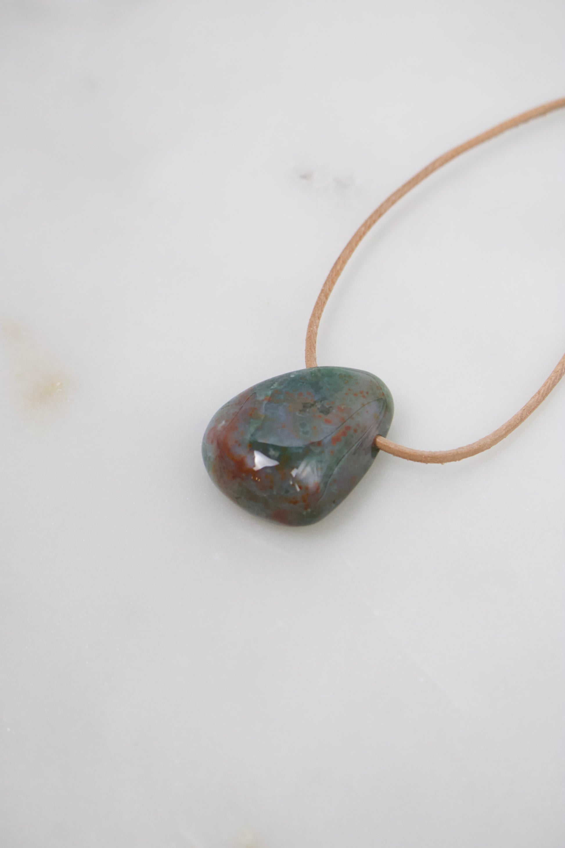 31 mm Ozean-Jaspis-Anhänger in Grün mit roten Pünktchen – Lederband nach Wahl