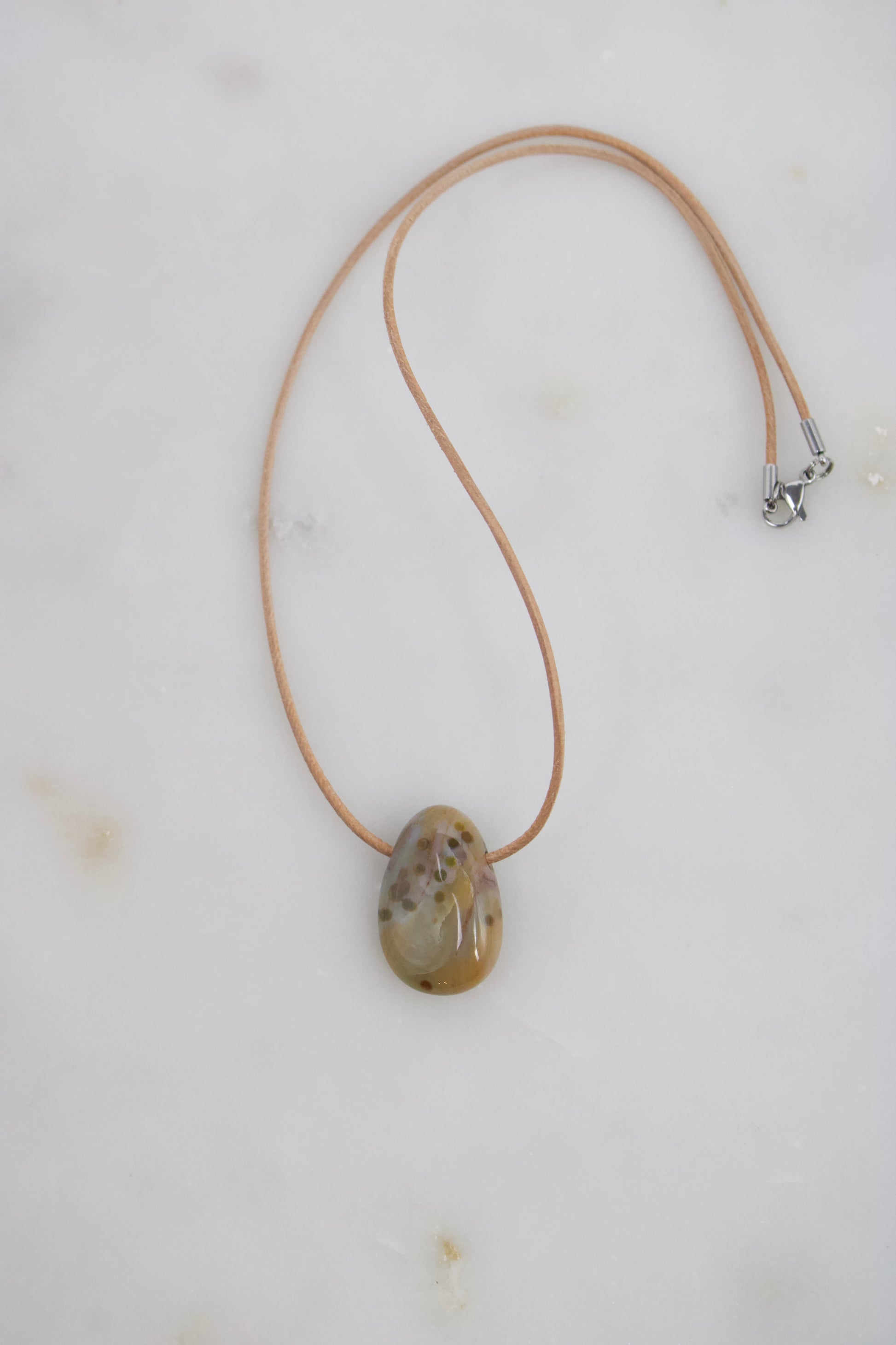 Der Anhänger wird mit einem Lederband deiner Wahl geliefert und ist mit einem hochwertigen Karabinerverschluss aus Edelstahl in Silber- oder Goldoptik ausgestattet – für ein natürliches und dennoch edles Tragegefühl.